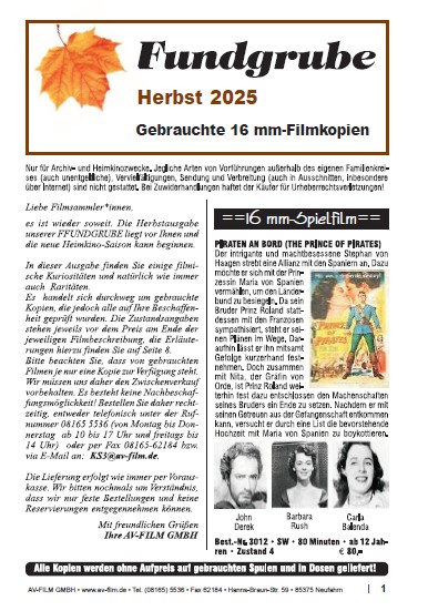 Restpostenliste der lieferbaren gebrauchten 16 mm- und vereinzelt auch Super 8-Filmkopien, die Sie für Ihr Archiv und Ihre private Sammlung erwerben können (ohne öffentliche Aufführungs- und sonstige Rechte).